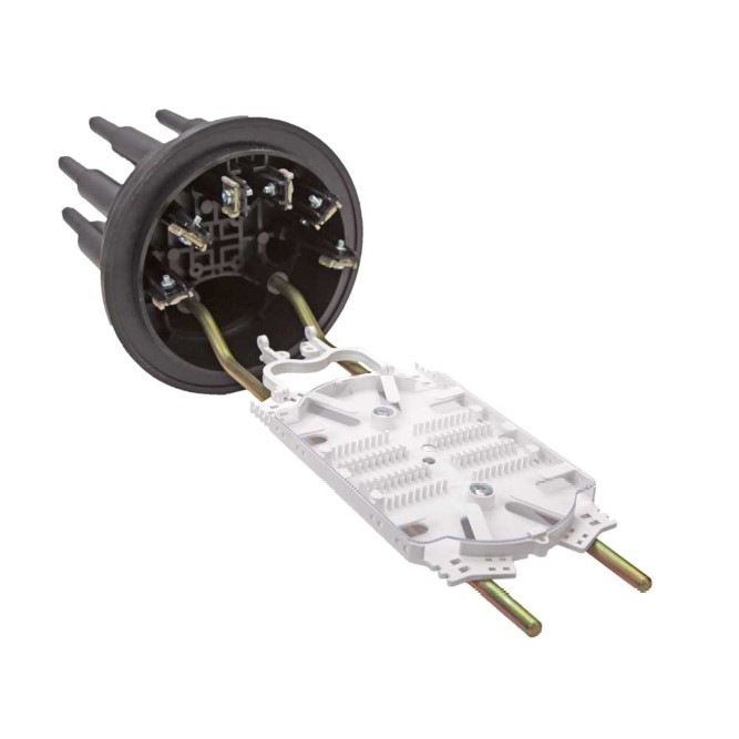 МТОК-Г3/288-1КТ3645-К - тупиковая муфта для монтажа оптических кабелей с вынесенным силовым элементом типа «8», подвесных самонесущих, городских кабелей любых конструкций, в том числе и с броней из стальной гофрированной ленты. Данная муфта предназначена для размещения максимально возможного количества сварных соединений. Поэтому пространство для размещения транзитной петли оптических модулей занято дополнительным рядом кассет и выкладка петли не возможна.