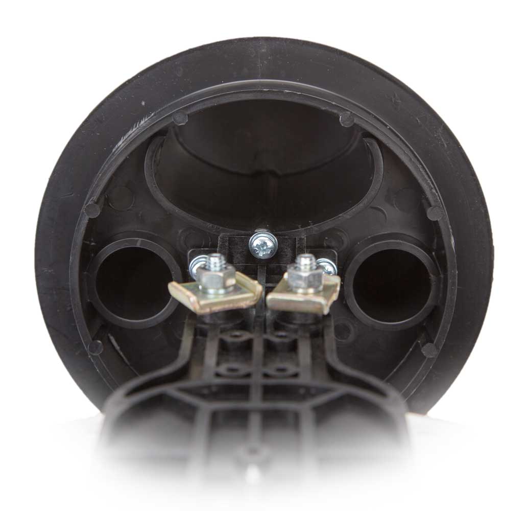 Овальный патрубок муфты может использоваться для одного из перечисленных случаев: 1) ввода транзитной петли кабеля или 2) ввода двух кабелей диаметром до 25 мм. В обоих случаях для герметизации необходимо дополнительно приобрести (Ввод №6).