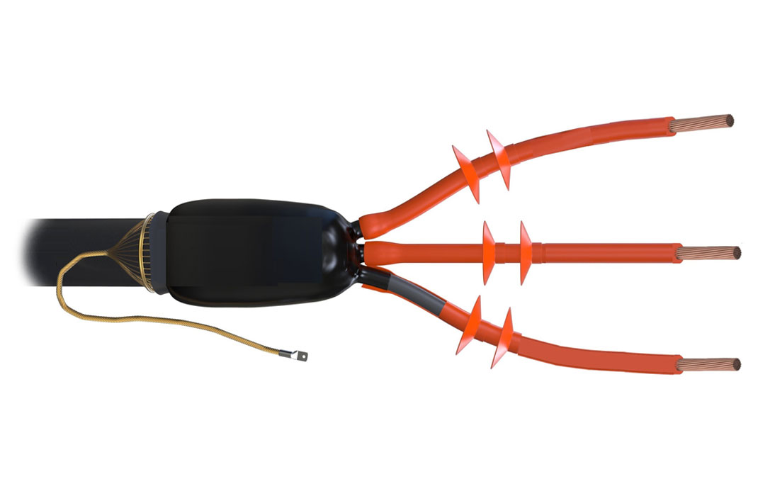 В составе муфты применяются трубки стресс-контроля снижающие риск пробоя изоляции на срезе полупроводящего слоя и специальный герметик со свойствами выравнивания напряженности электрического поля. Использование изолирующей антитрекинговой трубки и изолятора снижает риск пробоя по поверхности изоляции.