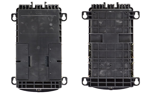 Внутри корпуса установлена съёмная монтажная панель (вставка), с тыльной стороны которой предусмотрено место для укладки транзитной петли оптических модулей, установлены фиксаторы кабеля и кассета КС-1645 для сварки волокон распределительных ВОК. Предусмотрена установка до 3х кассет КС-1645.
