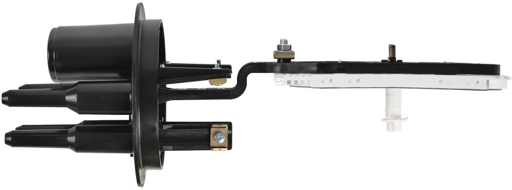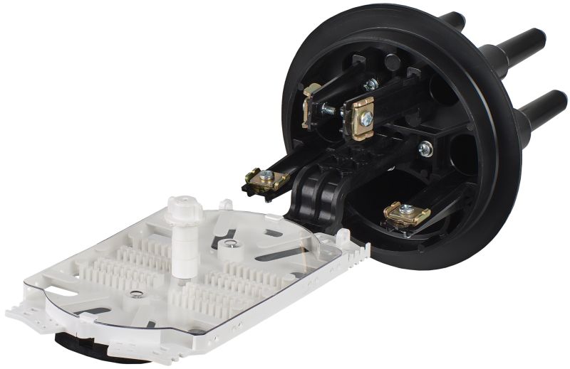 Без транзитной петли и при условии ввода в круглые патрубки 2-х тонких ОК общее число вводимых в муфту кабелей может достигать 10 ОК. С помощью модифицированного кронштейна в муфту помещается до 4-х кассет КТ3645.