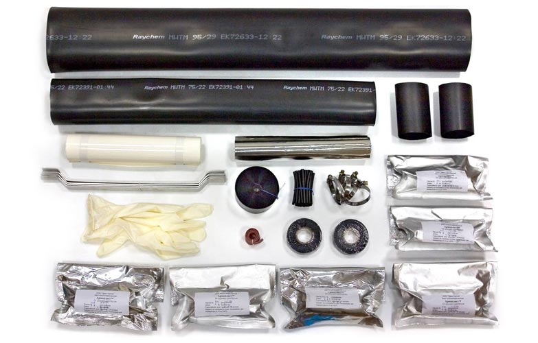 В комплекты муфты включены детали и материалы, обеспечивающие изолирование скруток жил, восстановление поясной изоляции с влагозащитой, соединение алюминиевой оболочки, восстановление герметичности оболочки, перепайку брони и механическую защиту смонтированной муфты влагоотверждаемым бинтом «Армопласт».