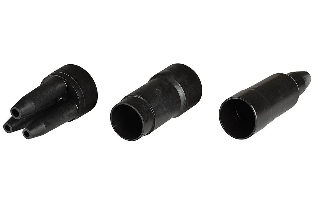 Муфты МРП представляют собой полиэтиленовые корпуса определенной формы. Дополнительно следует заказывать материалы для выполнения всех монтажных операций – от сращивания жил до герметизации муфт.