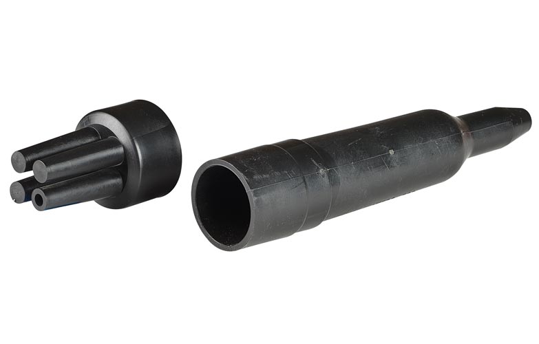 Муфты МРП представляют собой полиэтиленовые корпуса определенной формы. Дополнительно следует заказывать материалы для выполнения всех монтажных операций – от сращивания жил до герметизации муфт.