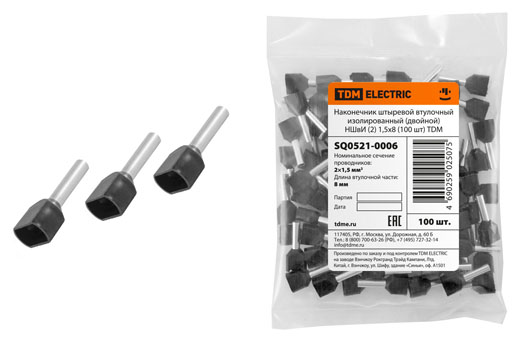 Наконечник штыревой втулочный изолированный (двойной) НШвИ (2) 1,5х8 (100 шт) TDM