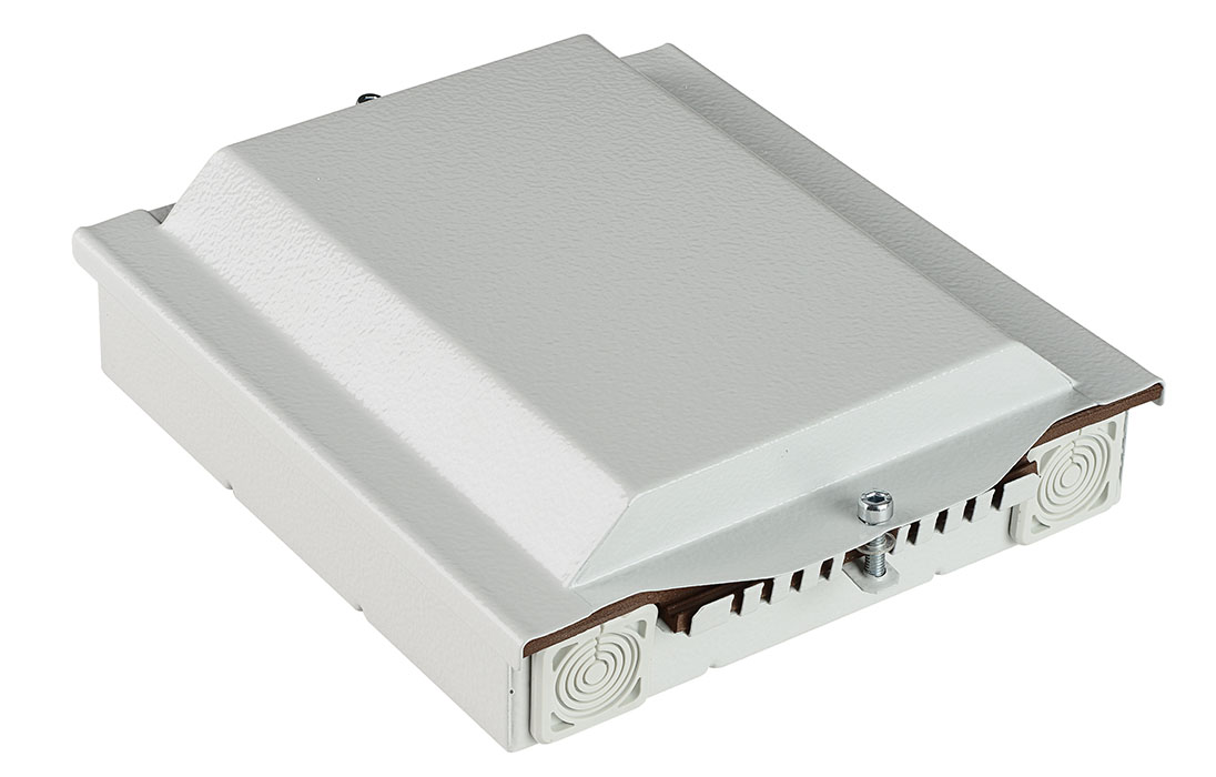 Корпус изготовлен из металла и окрашен порошковой краской. Внутри корпуса находится пластмассовая вставка, на которой выкладывается запас волокон пигтейлов, размещаются ложементы для КДЗС и оптические адаптеры для подключения входных разъемов сплиттерных модулей. Зона монтажа ОВ закрывается металлической крышкой к которой крепятся сплиттерные модули. Для ограничения доступа оснащаются винтом-секреткой.