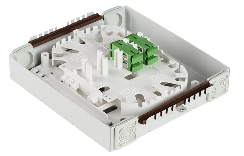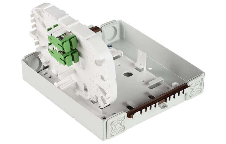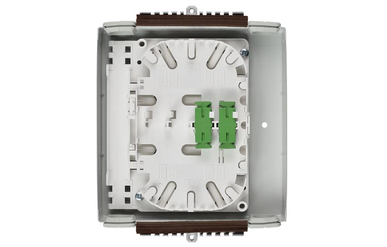 Имеют пылезащитный металлический корпус со съёмной крышкой, внутри которого находится пластиковая вставка со съёмной поворотной кассетой. С внутренней стороны кассеты выкладывается запас волокон и размещаются ложементы для КДЗС, а с наружной стороны находятся гнёзда для установки оптических адаптеров. Съёмная откидная монтажная панель обеспечивает удобство монтажа и эксплуатации. Для ограничения доступа оснащаются винтом-секреткой.