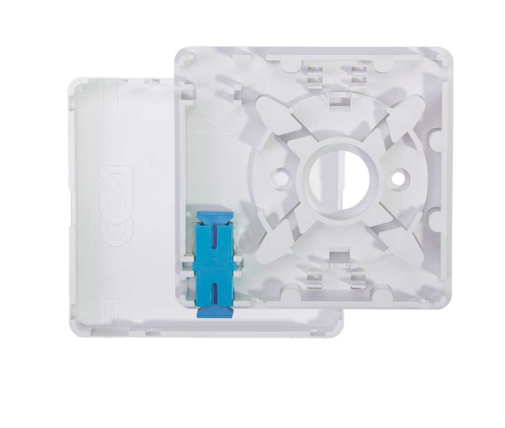 Оптический кабель разделывается и фиксируется на основании корпуса. Волокно сваривается с пигтейлом, КДЗС закрепляется в ложементе. Возможно использование механических соединителей типа Fibrlok. Адаптер устанавливается в одно из посадочных мест на основании корпуса.