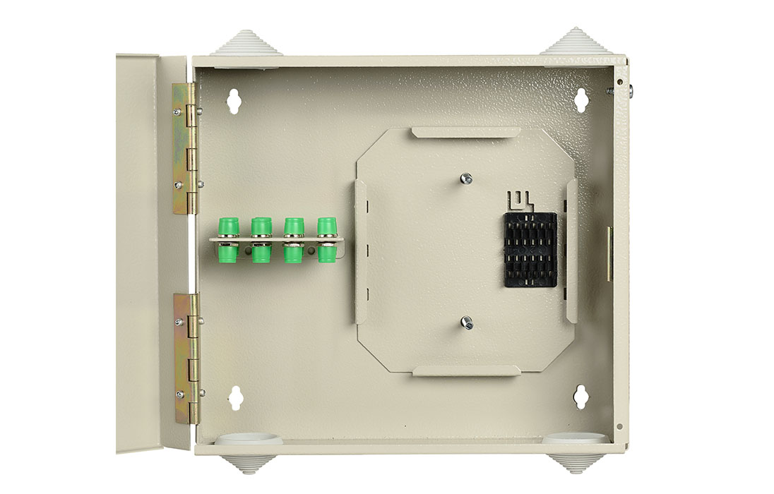 Оптические кабели разделываются и фиксируются в зоне ввода. Далее волокна в модулях поступают на кассеты для сварки с пигтейлами.