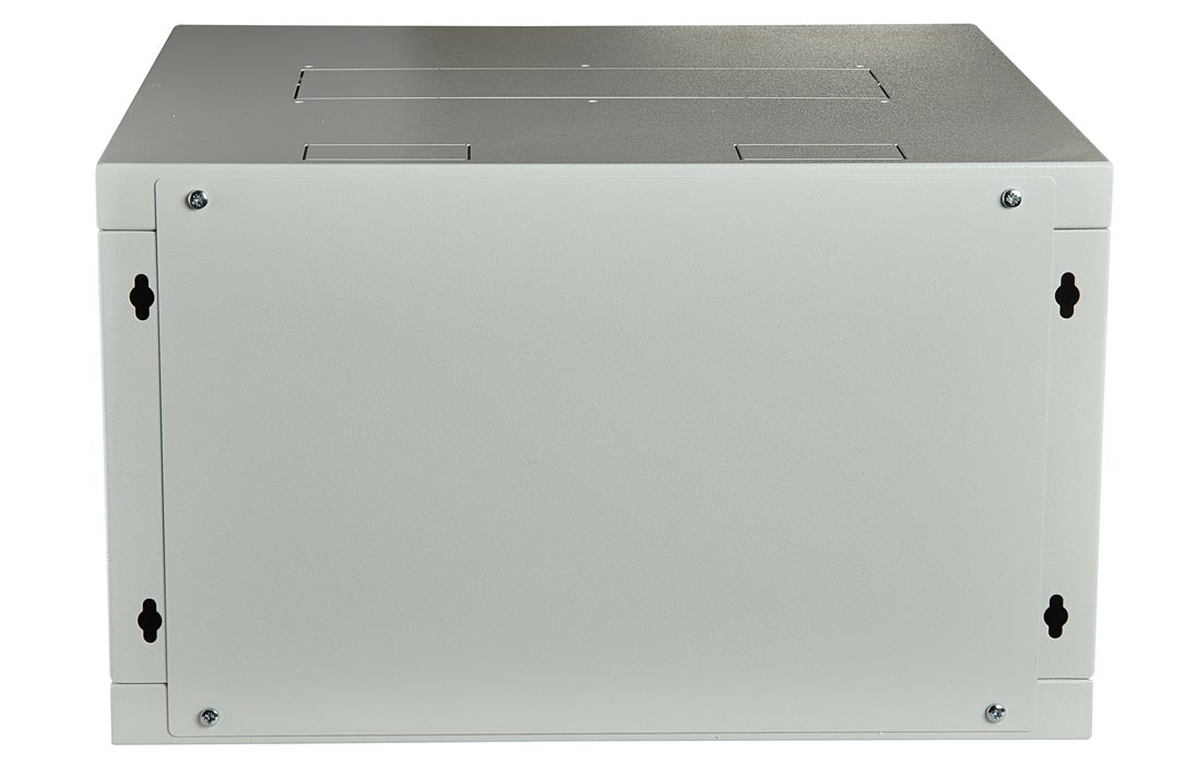 Имеет полностью разборную конструкцию и состоит из шести основных частей: крыша, дно, две боковые стенки с вертикальными направляющими, дверь, задняя стенка* и две передние направляющие. За счет элементов крепления каркас шкафа имеет повышенную жесткость. Комплектация шкафа возможна с несколькими исполнениями двери-металлической, перфорированной и с каленым ударопрочным, тонированным стеклом. Предусмотрены два кабельных ввода в верхней и нижней частях шкафа, размер – 100х50 мм. В основание или крышу шкафа возможна установка вентиляторного модуля. Для установки модуля демонтируется заглушка, и модуль фиксируется шестью винтами. Вертикальные направляющие регулируются по глубине. Система заземления шкафа входит в стандартную комплектацию.