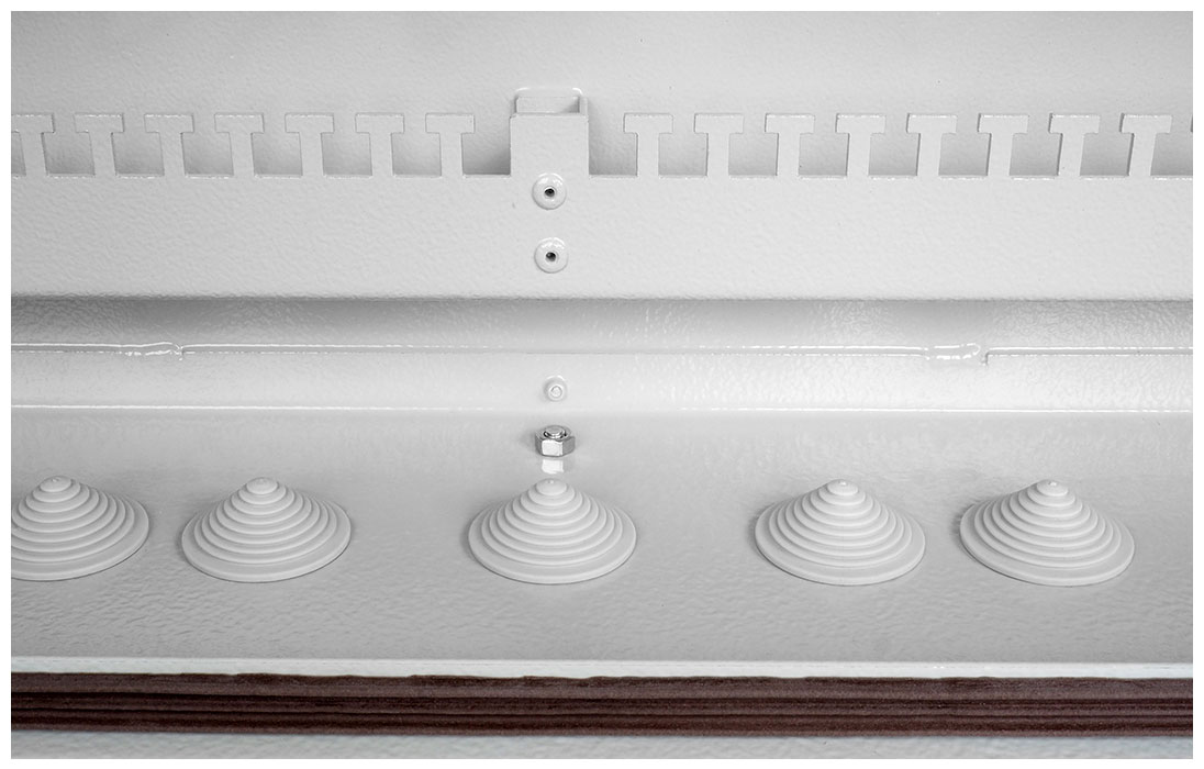 Высокая прочность материала и уплотнители дверей предотвращают попадание внутрь шкафа пыли, влаги и насекомых. Антивандальный замок с приводом на тяге обеспечивает блокировку двери в трех точках.