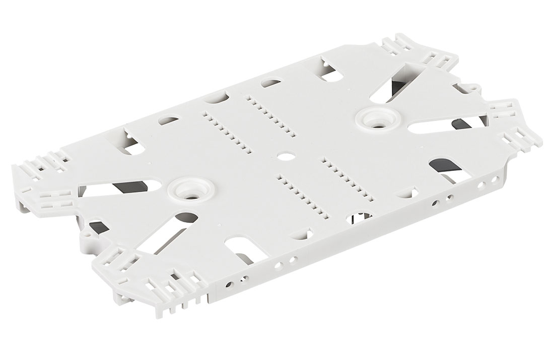 Конструкция кассеты позволяет заводить модули с ОВ с любого из четырёх углов и осуществлять изменение направления укладки запаса волокон. Свободная укладка дает возможность трехкратной переделки сварки волокна без уменьшения числа витков запаса.