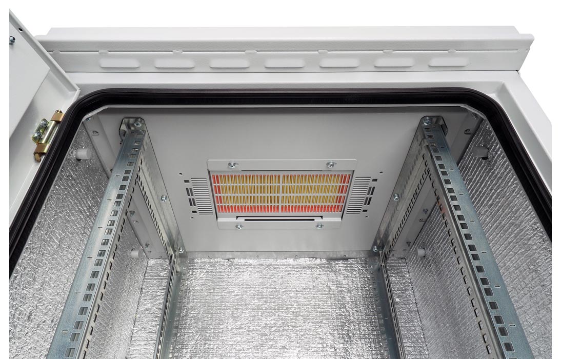 Крыша шкафа вентилируемая, внутри установлен фильтр. Имеются места для установки вентиляторного модуля в крышу.
