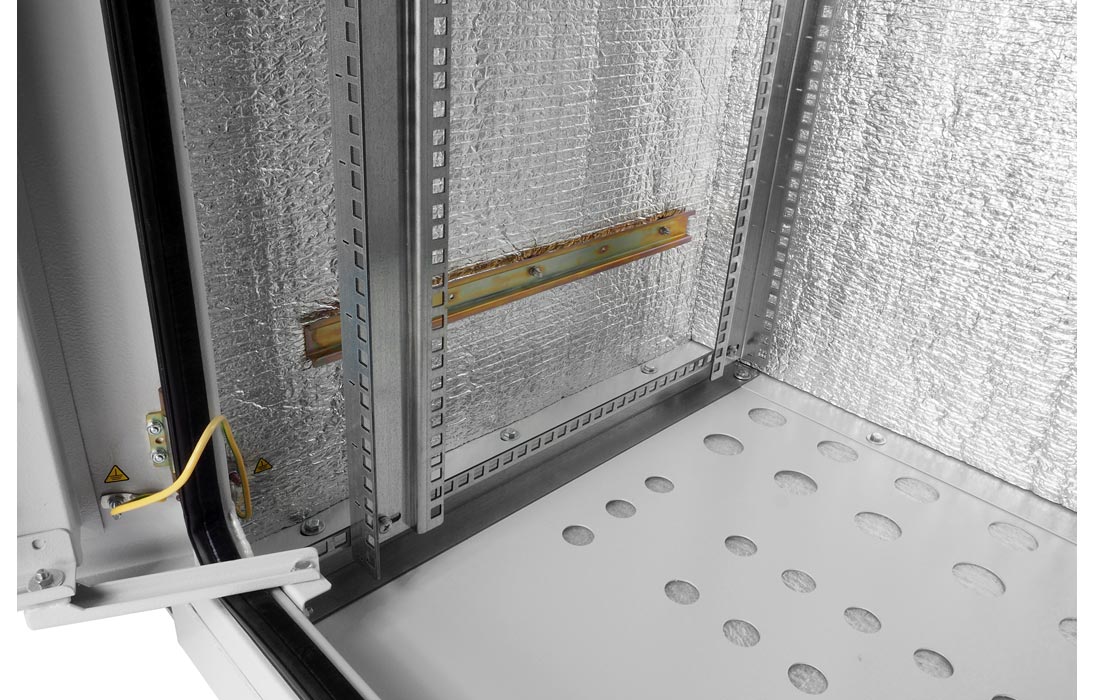Имеет цельнометаллический сварной каркас, удобен для быстрой установки и монтажа оборудования, так как не требует сборки. За счет элементов крепления каркас шкафа имеет повышенную жесткость.