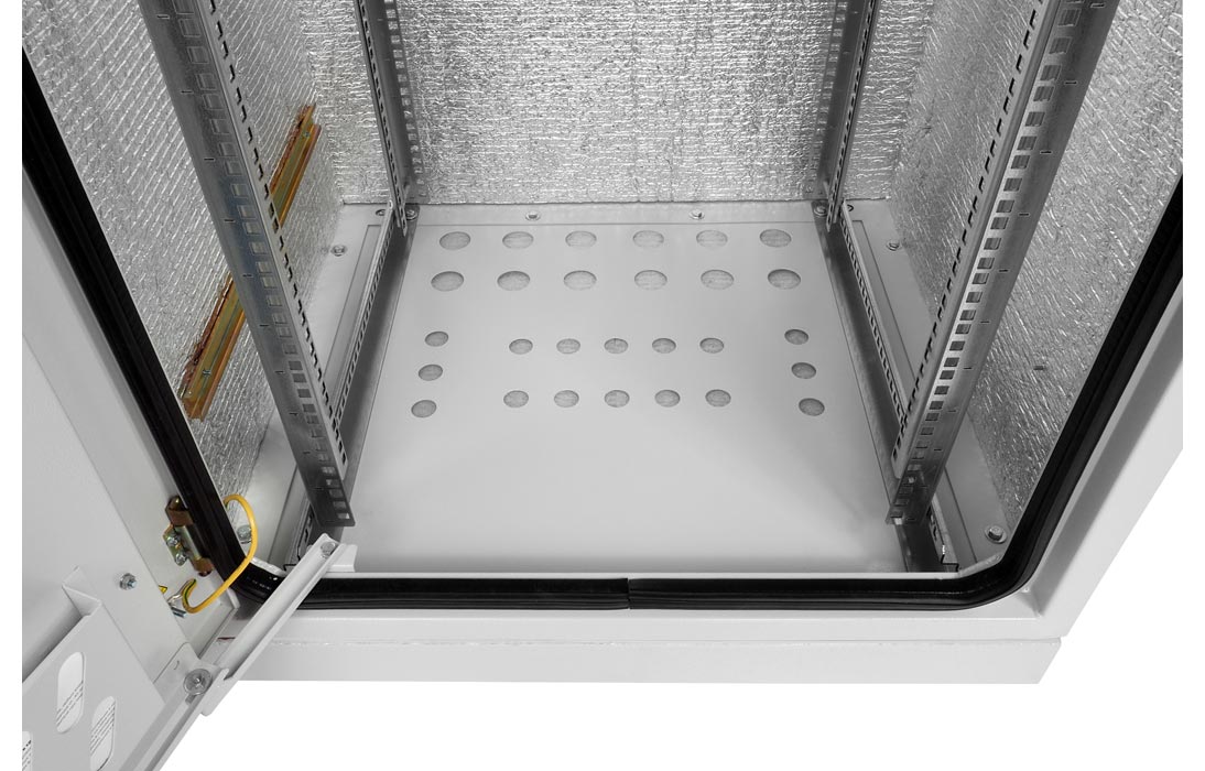 Имеет цельнометаллический сварной каркас, удобен для быстрой установки и монтажа оборудования, так как не требует сборки. За счет элементов крепления каркас шкафа имеет повышенную жесткость.