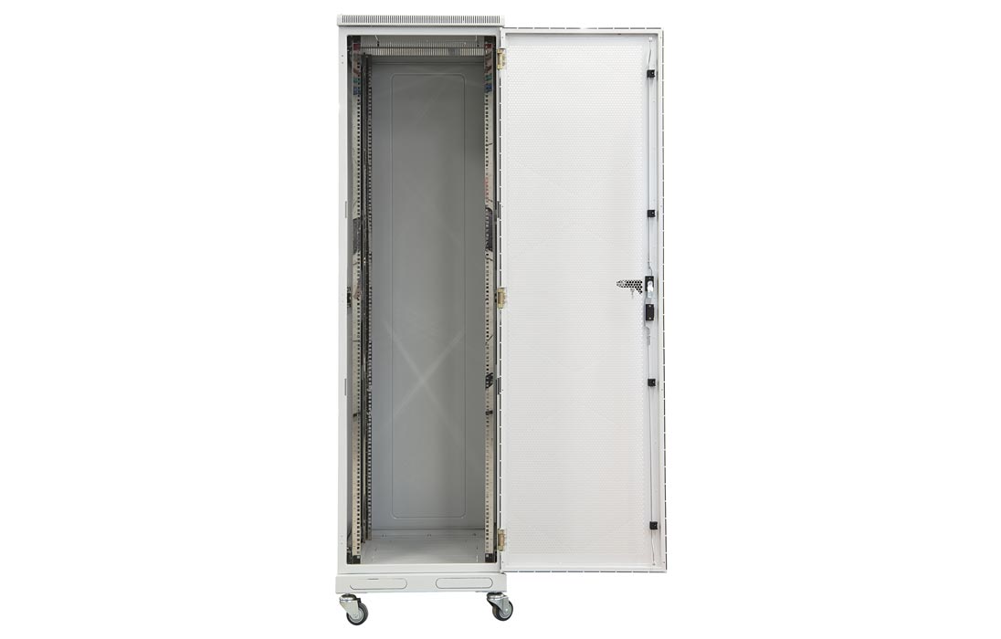 За счет элементов крепления каркас шкафа имеет повышенную жесткость. Распределенная вертикальная нагрузка до 600 кг. Стандартно шкаф комплектуется: передней дверью, боковыми и задней стенками с замками.