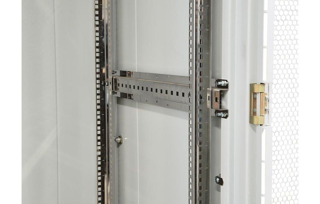 Вертикальные направляющие регулируются по глубине. Система заземления шкафа входит в стандартную комплектацию.