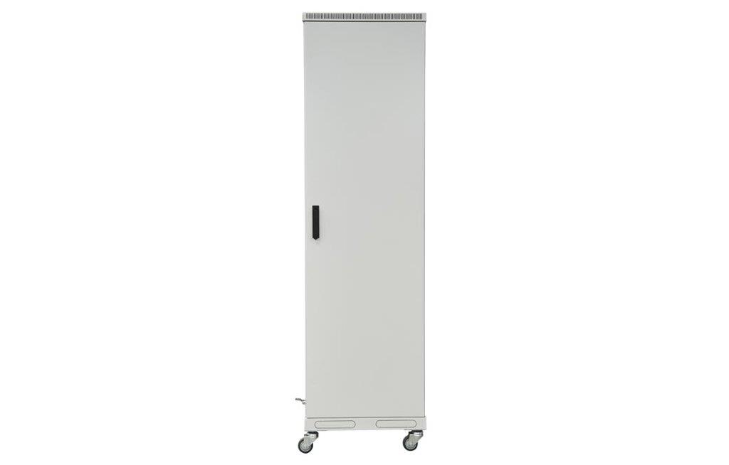 За счет элементов крепления каркас шкафа имеет повышенную жесткость. Распределенная вертикальная нагрузка до 600 кг. Стандартно шкаф комплектуется: передней дверью, боковыми и задней стенками с замками.
