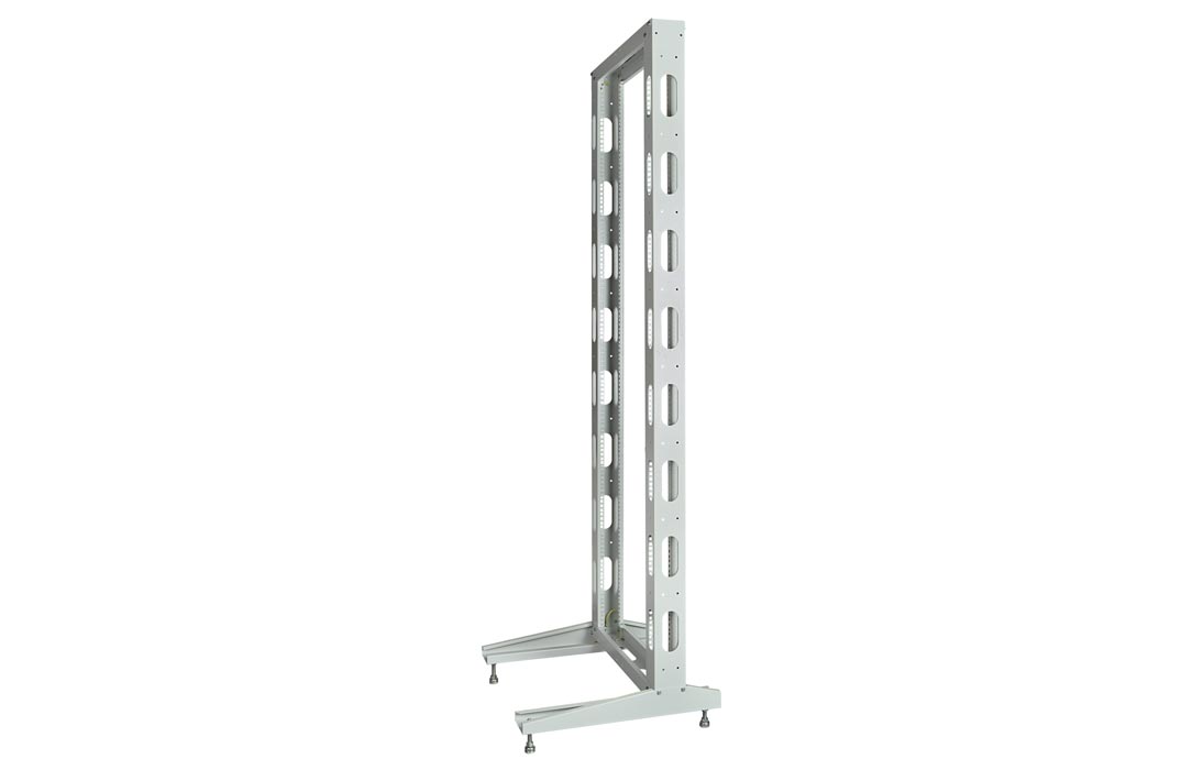 Универсальные стойки 19" имеют полностью разборную однорамную конструкцию, каркас повышенной жесткости скреплен болтами, материал сталь 2 мм и 1.5 мм. Для удобства монтажа и коммутации оборудования предусмотрена перфорация по всей длине рамы, широкий спектр аксессуаров. При организации крупных коммутационных узлов возможно крепление стоек между собой через вертикальный кабельный органайзер. Стойка устанавливается на регулируемые винтовые опоры (ножки), компенсирующие неровности пола, или ролики.