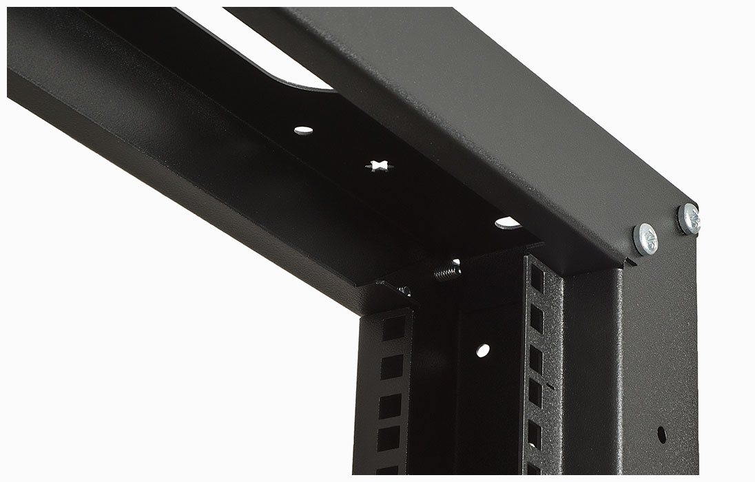 Имеет полностью разборную однорамную конструкцию. Для удобства монтажа и коммутации оборудования предусмотрена перфорация по всей длине рамы, широкий спектр аксессуаров. Устанавливается на регулируемые винтовые опоры (ножки), компенсирующие неровности пола, или ролики. Высота стойки – 24U.