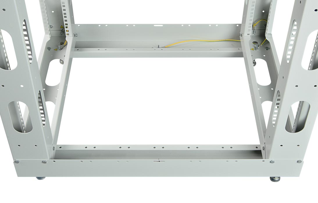 Имеет полностью разборную двухрамную конструкцию. Для удобства монтажа и коммутации оборудования предусмотрена перфорация по всей длине рамы, широкий спектр аксессуаров. Возможна регулировка полезной глубины – 750 мм, 650 мм, 550 мм, 450 мм. Устанавливается на регулируемые винтовые опоры (ножки), компенсирующие неровности пола, или ролики. Высота стойки 24U.