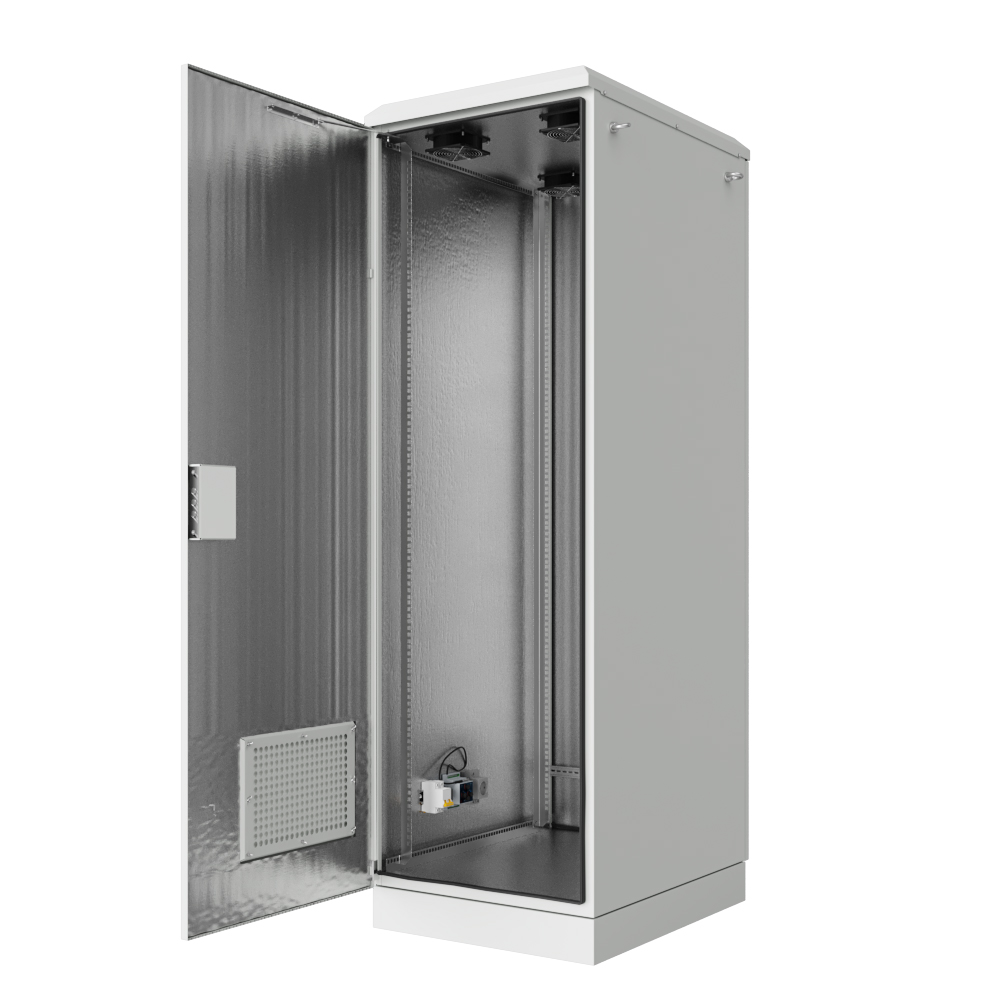 Шкаф климатический напольный телекоммуникационный, предназначен для внешнего монтажа на открытых площадках, где оборудование подвергается высоким внешним воздействиям, либо в помещениях с высокой влажностью. Уличный всепогодный настенный шкаф представляет собой законченное решение, с системой контроля и поддержания необходимых температур и влажности 365 дней в году.