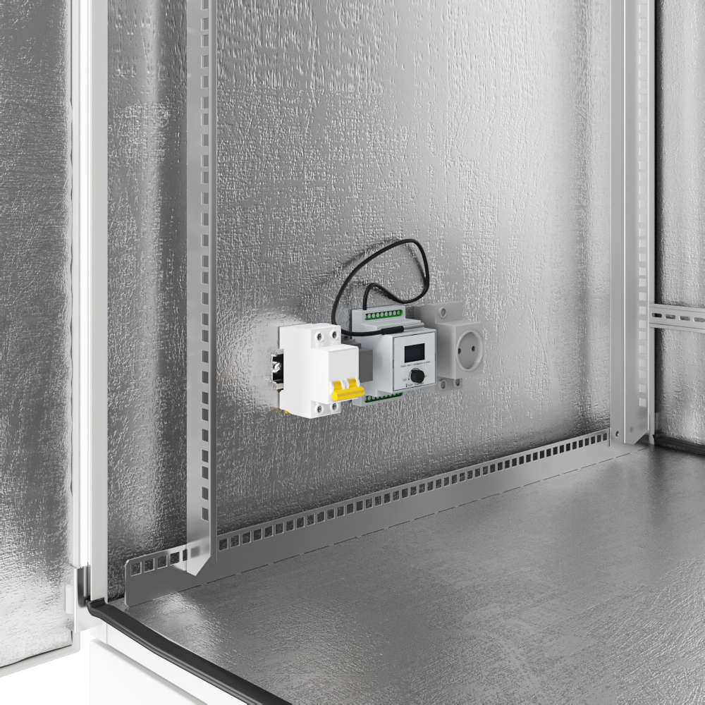 Электронный блок управления климатом (от 2-х до 4-х каналов управления) с функцией холодного старта. Данный блок комплектуется выносным датчиком температуры/влажности, размещаемым в месте, которое позволяет точнее контролировать температурный режим внутри шкафа.
