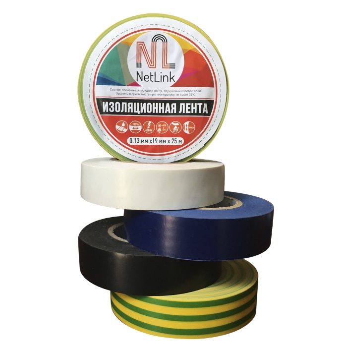 Изолента NETLINK 19мм х 25м (упак.5 штук)