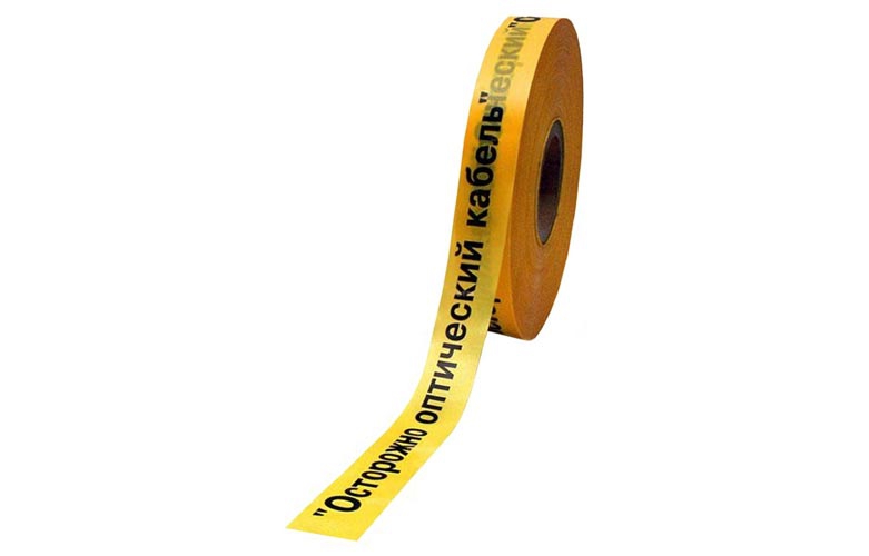 Лента сигнальная (Оптика) с логотипом (Осторожно оптический кабель) предназначена для идентификации магистралей оптического кабеля при прокладке в грунте любых категорий.