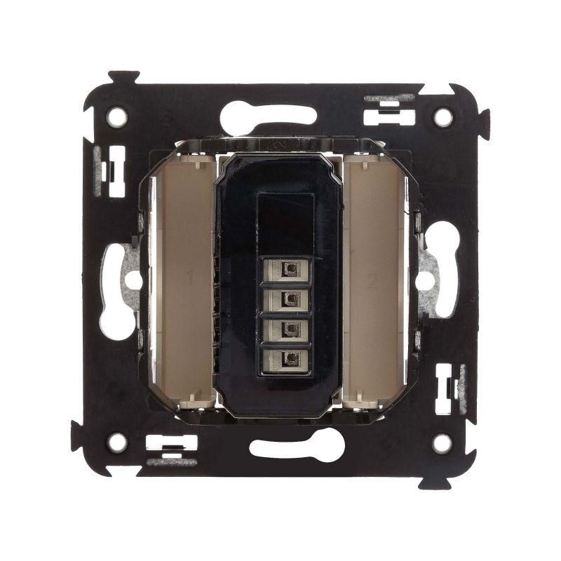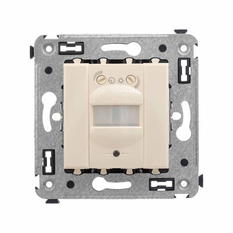 Датчик движения. Назначение: для монтажа в подрозеточные коробки глубиной не менее 45 мм (код 59301). Используется для автоматического включения/выключения света. Характеристики: диаметр отверстий для ввода кабелей – 3 мм; винтовые зажимы; шаблон для зачистки кабеля – 11 мм; расстояние обнаружения – от 2 до 12 м; угол охвата – 150°; время задержки отключения – от 10 с до 7 мин.; настройка светочувствительности датчика; настройка порога освещенности; фиксация в подрозеточные коробки глубиной не менее 45 мм при помощи каркаса с лапками (код 4400802) и саморезов. Цвет: "Ванильная дымка".