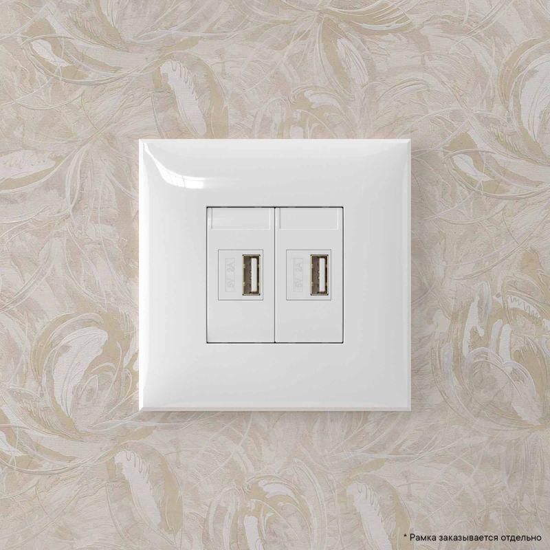 USB зарядное устройство предназначено для скрытого монтажа в стену и рассчитано на номинальный ток 2,1, номинальное напряжение от 220 до 250 В. Пластиковые части устройства имеют цвет "Белое облако" – этот светлый оттенок ассоциируется с легкостью, воздушностью и чистотой и сочетается с любыми цветами. Глянцевый блеск придает конструкции стильный внешний вид. Изделие имеет два модуля. Материал: металл, термопласт.