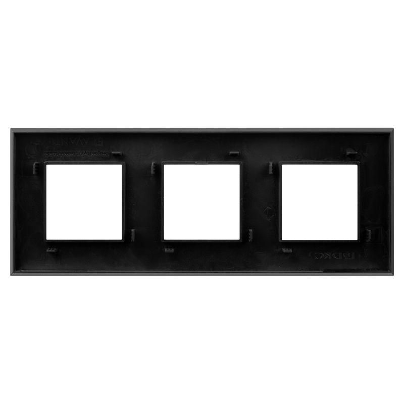 Рамки ДКС, разработанные студией Артемия Лебедева, предназначены для декоративного оформления электроустановочных изделий. Цвет рамки: "Черный матовый" - темный, манящий, приглушающий свет акцент. Отсутствие следов от прикосновений на поверхности изделий дает ощущение премиального вида в интерьере. Линейка сочетается с текстурными сдержанными покрытиями, интерьерами в различных стилях от минимализма и контемпорари до арт-деко и гранж, на стенах из необработанного кирпича в помещениях лофт. В рамке предусмотрено 3 поста под ЭУИ (6 модулей). Рамка может быть размещена как горизонтально, так и вертикально. Габаритные размеры: 230х90 мм. Материал – термопласт.
