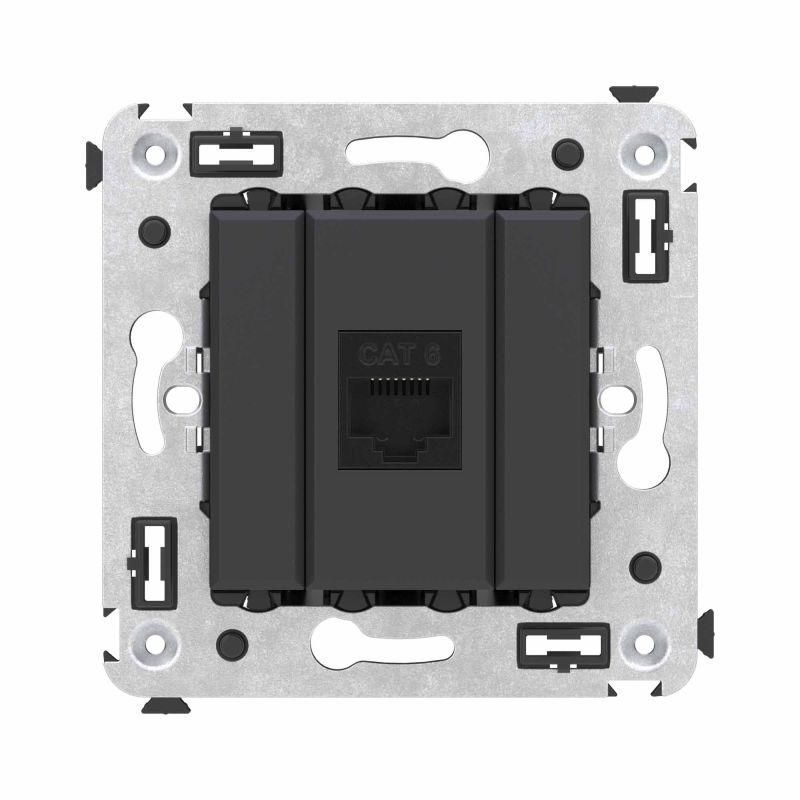 Компьютерная розетка используется для подключения компьютерной техники и соединения с патч-панелью, предназначена для скрытого монтажа в стену, поставляется в комплекте с суппортом. Розетка RJ-45 категории 6 может использоваться для организации сетей с частотой до 250 МГц и передавать данные на большие расстояния. Материал розетки – металл, термопласт. Пластиковые детали изделия выполнены в цвете "Черный матовый"
