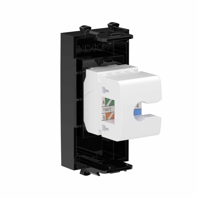 Телефонная розетка RJ-12 модульная без шторки. Предназначена для комплектации систем организации рабочих мест (кабель-каналов, лючков, башенок, колонн) при помощи рамок-суппортов и каркасов "Avanti" (код 4400912 и т.д.). Служит для подключения телефонного кабеля к рабочему месту. 6P6C. В комплекте разъем Keystone. Для заделки контактов используется инструмент типа 110. Фиксация в подрозеточные коробки глубиной не менее 45 мм производится при помощи каркаса с лапками (код 4400802) и саморезов. 1 модуль. Цвет: "Черный квадрат".