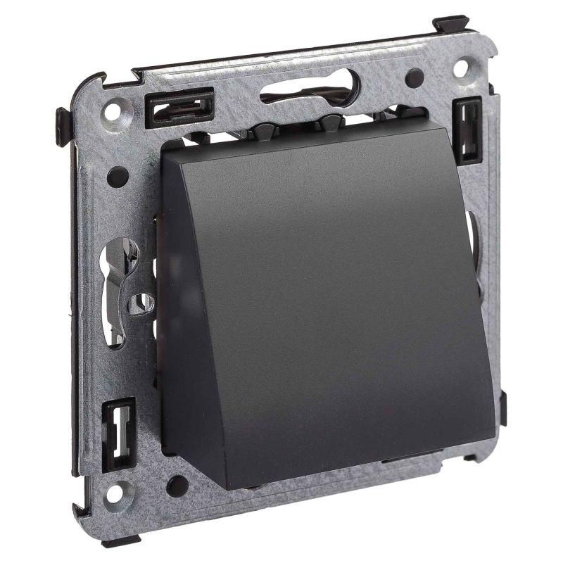 Вывод кабеля из стены. Назначение: для монтажа в подрозеточные коробки (код 59301); для вывода и фиксации кабеля. Количество модулей: 2. Цвет: "Черный матовый".