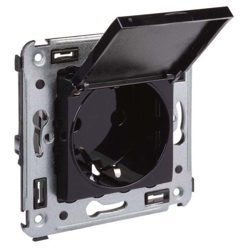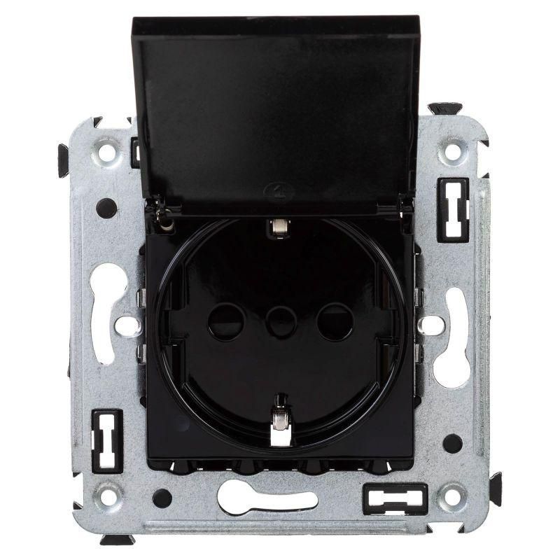 Розетка 1-м СП 2мод. Avanti "Черный квадрат" 16А IP41 2P+E защ. шторки с крышкой черн. DKC 4402013