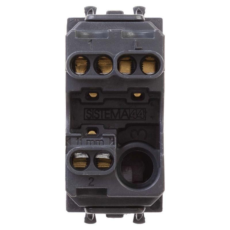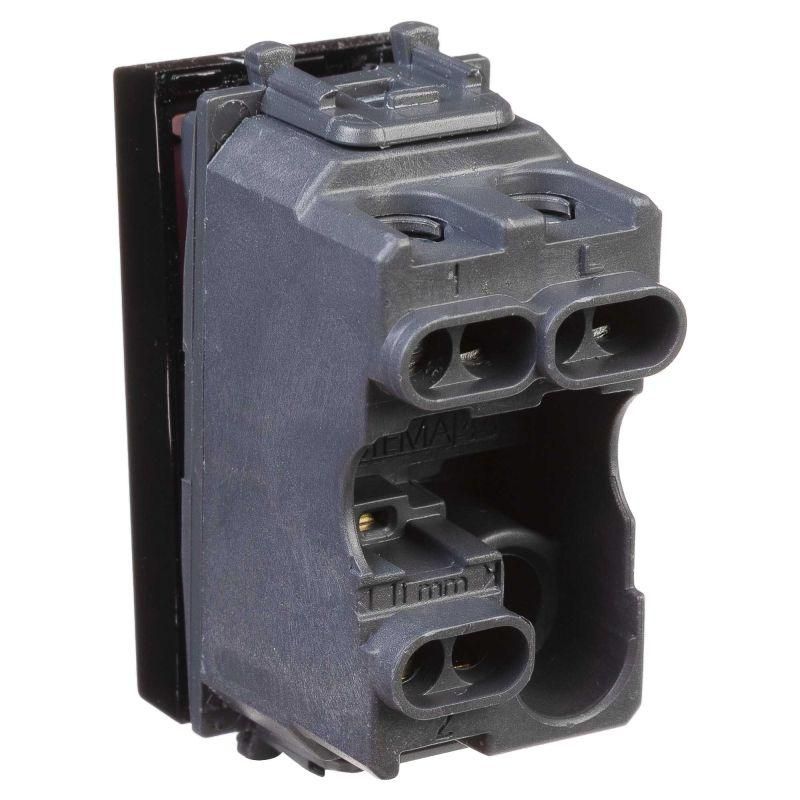 Переключатель модульный серии "Avanti". Предназначен для монтажа в системы "In-liner Front" и "In-liner Aero" при помощи рамок-суппортов и каркасов "Avanti" (код 4400912 и т.д.); включения/выключения освещения с двух мест. Диаметр отверстий для ввода кабелей – 3 мм (по 2 отверстия на одну клемму); винтовые зажимы; шаблон для зачистки кабеля – 11 мм; номинальное напряжение – 230 В. Фиксация в подрозеточные коробки при помощи каркаса с лапками (код 4400802) и саморезов. 1 модуль. Цвет: "Черный квадрат".