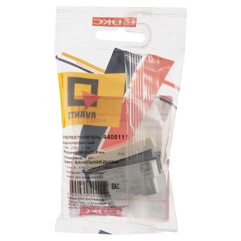 Переключатель модульный 1-кл. 1мод. Avanti "Ванильная дымка" 16А IP20 беж. DKC 4405111