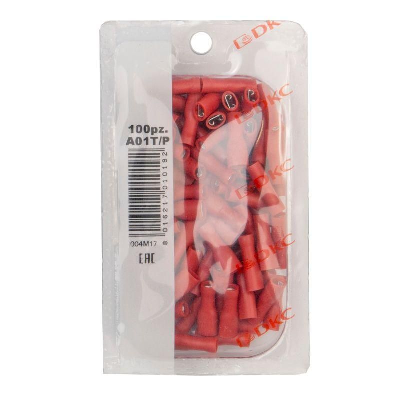 Наконечник изол. "розетка" 0.25-1.5кв.мм А=4.8х0.8мм кр. (уп.100шт) DKC 2A01TP