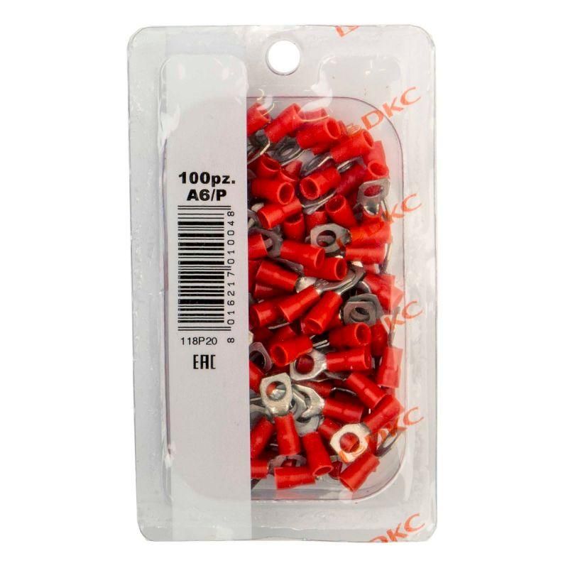 Наконечник кольц. изол. 0.25-1.5кв.мм отв. d6.2мм кр. (уп.100шт) DKC 2A6P