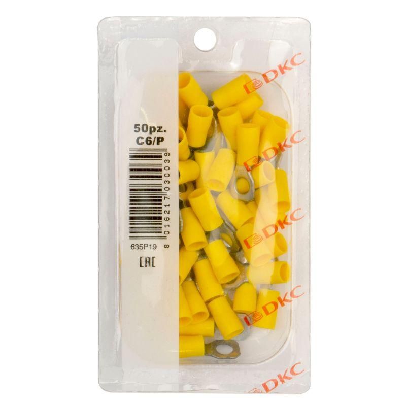Наконечник кольцевой изолированный 2.5-6кв.мм отв. d6.2мм желт. (уп.50шт) DKC 2C6P