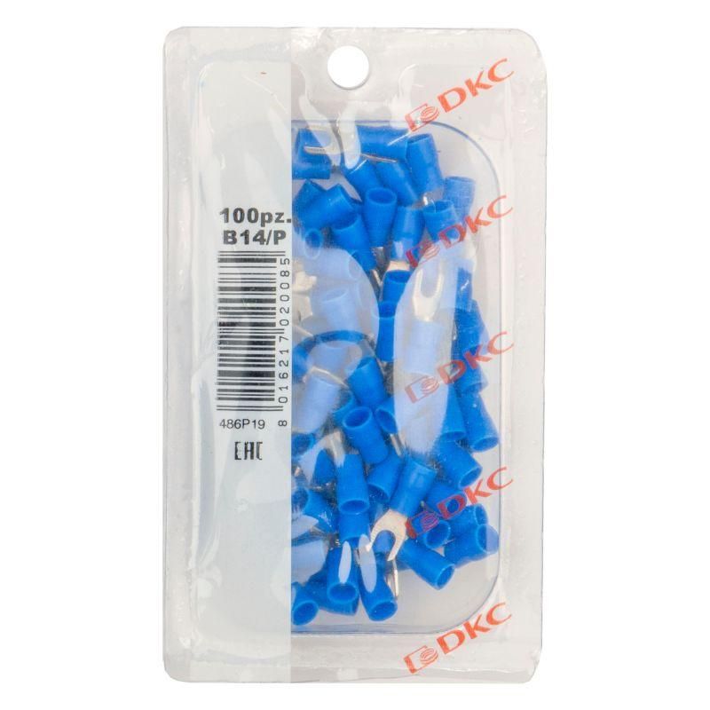 Наконечник вилочный изолированный 1.5-2.5кв.мм А=4.1мм син. (уп.100шт) DKC 2B14P