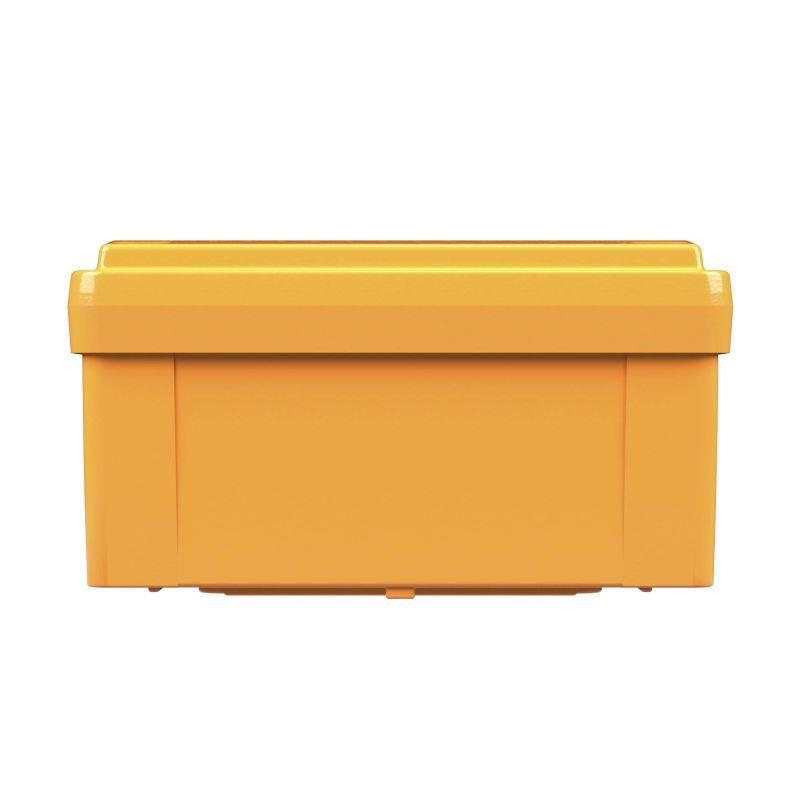 Назначение пластиковых огнестойких ответвительных коробок – соединение и ответвление проводов и кабелей с сохранением работоспособности при пожаре. Коробки применяются прежде всего в составе огнестойких кабельных линий и прошли испытания в соответствии с ГОСТ Р 53316-2009 с различными производителями кабеля. Материал – специальный термопласт, цвет – оранжевый RAL 2003. В комплект поставки коробок входят керамические клеммники, а также огнестойкие метизы (монтажная пластина, анкера, винты, шайбы, гайки).