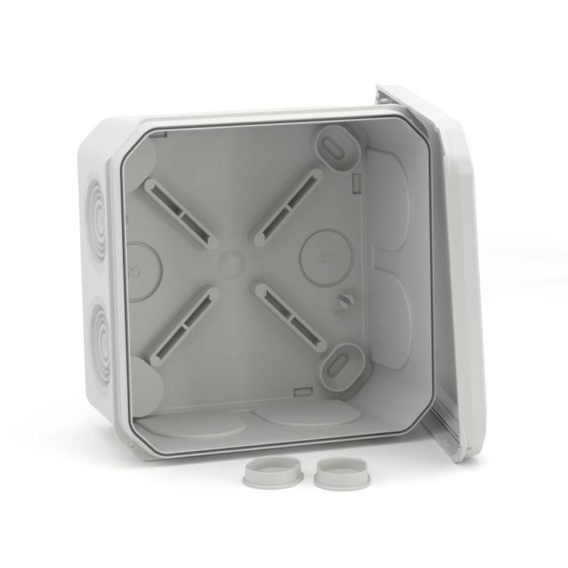 Ответвительная коробка квадратной формы с кабельными вводами применяется для защиты и эстетичного оформления мест соединения кабелей (информационных, осветительных, силовых). Коробка имеет 6 кабельных вводов-сальников, предназначенных для кабеля с максимальным диаметром 25 мм. Ответвительная коробка обеспечивает повышенный уровень пыле- и влагозащиты – IP 55. Параметры коробки: 100x100 мм, глубина – 50 мм (внутренние размеры). Материал – пластик. Ответвительные коробки можно устанавливать как в помещении, так и на открытом воздухе (при условии, что коробка будет защищена от воздействия прямых солнечных лучей и осадков). Цвет - серый. Температура эксплуатации: от –25 °C до +60 °C.