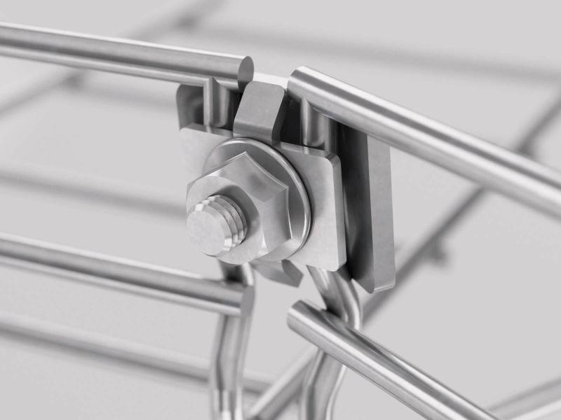 В процессе монтажа любой системы кабельных лотков необходимо применять специальные крепежные элементы. В ассортименте продукции ДКС есть собственные элементы крепежа, которые могут использоваться вместе с проволочными лотками системы "F5 Combitech". Крепежные элементы изготавливаются из стали с противокоррозионным покрытием, имеют высокую прочность и обеспечивают элементам системы прочное и надежное соединение друг с другом. Монтажный комплект № 1 предназначен для соединения секций проволочных лотков встык, изготовления таких аксессуаров, как отводы или повороты. В состав комплекта входят: шайба, четырехлепестковая шайба, Гайка М6, комплект М6х20. Комплекты поставляются в упаковке из 50 штук.