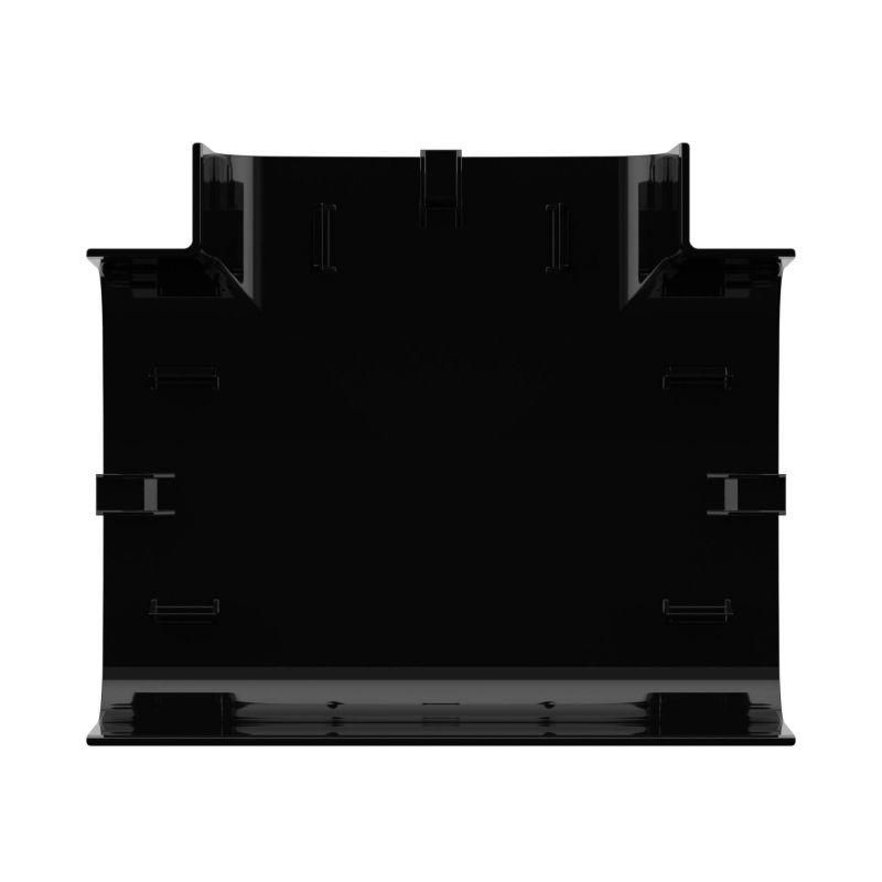 Тройник (Т-образный отвод). Назначение: декоративное оформление мест Т-образного соединения кабельных коробов. Характеристики: материал накладки – АБС-пластик; материал базы и разделителей – ПП. Комплект поставки: внешняя декоративная накладка; внутренняя база с разделителем. Типоразмер 110х50. Цвет черный