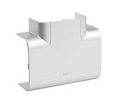 Тройник (Т-образный отвод) 140х50. Назначение: эстетичное оформление мест Т-образного соединения кабельных коробов. Характеристики: материал накладки – АБС-пластик; материал базы и разделителей – ПП. Комплект поставки: внешняя декоративная накладка; внутренняя база с разделителем; инструкция по монтажу. Размер 140х50. Цвет: серебристый металлик RAL 9006