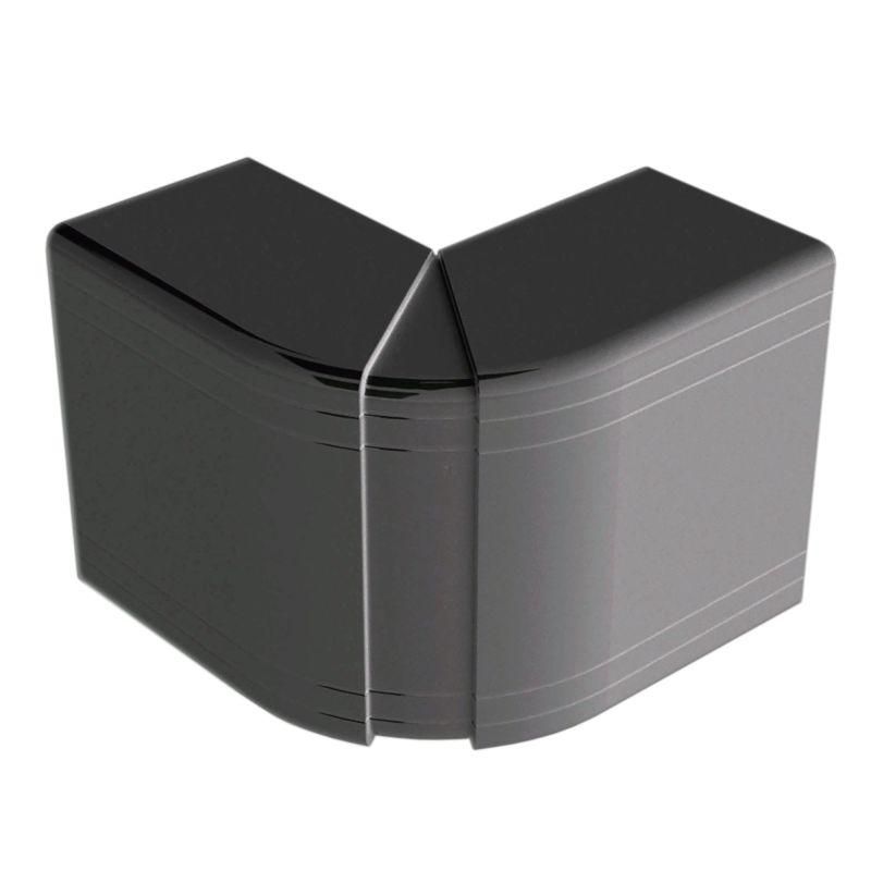 Угол внешний изменяемый (80-120°). Назначение: декоративное оформление мест стыковки кабельных коробов. Характеристики: материал накладки – АБС-пластик; материал базы и разделителей – ПП; встроенные перегородки для разделения внутреннего пространства на секции. Комплект поставки: внешняя декоративная накладка; внутренняя база; разделители (для монтажа на базу). Типоразмер 110х50. Цвет черный