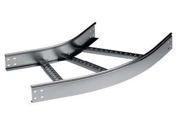 Аксессуары системы "L5 Combitech" позволяют строить кабельные трассы сложного конструктива, с многочисленными поворотами и углами. Один из широко используемых аксессуаров – угол горизонтальный. Он применяется для поворота кабельной трассы в горизонтальной плоскости на определенный угол. Данный угол необходим для осуществления поворота на 45° в горизонтальной плоскости, а также для параллельного монтажа кабельных трасс. Плавный изгиб аксессуара предупреждает повреждение кабеля при прокладке. При использовании вместе с крышкой достигается высокий уровень пыле- и влагозащиты – IP 44. Исполнение аксессуара - "Сталь, оцинкованная по методу Сендзимира". Толщина стали лонжерона - 1,2 мм, толщина стали поперечины - 1 мм. Аксессуар совместим с лотками шириной 200 мм и с высотой стенки 100 мм.