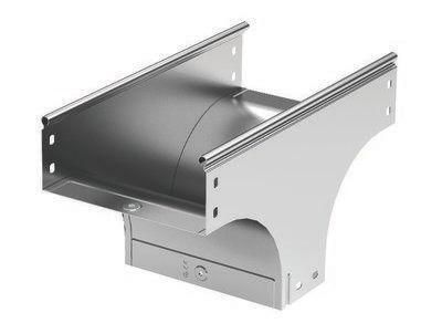 Ответвители – это аксессуары, облегчающие построение кабельных трасс сложной геометрии, с поворотами и изгибами. Они позволяют создавать ответвления кабельной трассы. Ответвитель TD имеет Т-образную форму и применяется для организации поворотов и ответвлений в вертикальной плоскости. Его конструктив обеспечивает плавный поворот и предупреждает повреждение кабеля при прокладке. При применении вместе с крышкой обеспечивается высокая степень пыле- и влагозащиты кабеля – до IP 44, и при этом простой доступ к кабелю, т.к. крышку можно снять при необходимости. Исполнение – "сталь, оцинкованная по методу Сендзимира". Высота боковой стенки лотка – 80 мм, ширина в горизонтальном направлении – 300 мм, ширина в вертикальном направлении – 300 мм. Применение комплектных аксессуаров облегчает расчет числа необходимых элементов для монтажа – в комплект уже входят соединительные пластины и детали крепежа.
